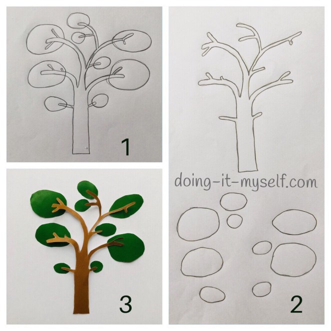 - Then, traced the ‘brown part’ (tree trunk) and the green part (leaves) separately on to brown and green colour papers respectively.