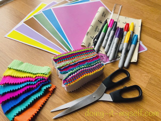 - As my paper streamers were not too long, I first grouped them colorwise and glued them to get real long streamers of individual colors.