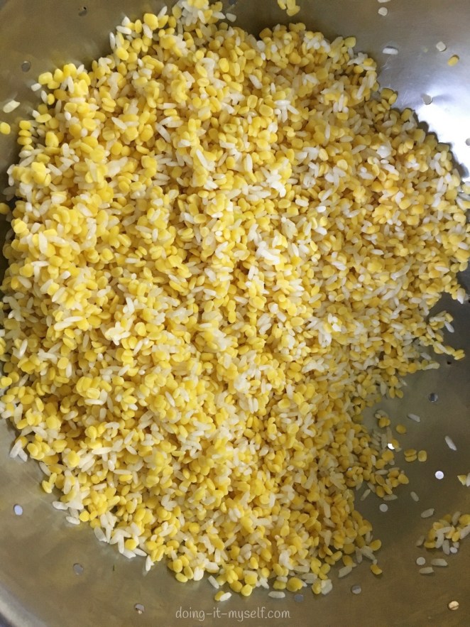 - Wash the rice and moong dal well under running water